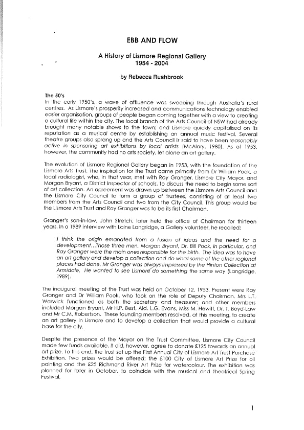 Read more: Ebb and Flow: A History of Lismore Regional Gallery 1954 - 2004 by Rebecca Rushbrook.