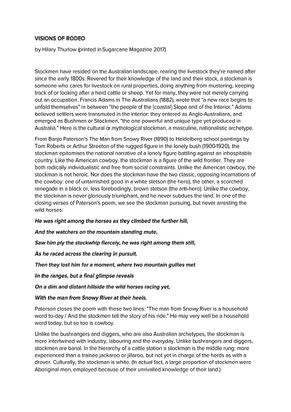 Visions of Rodeo (excerpt) by Hilary Thurlow 2017, printed in Sugarcane Magazine.